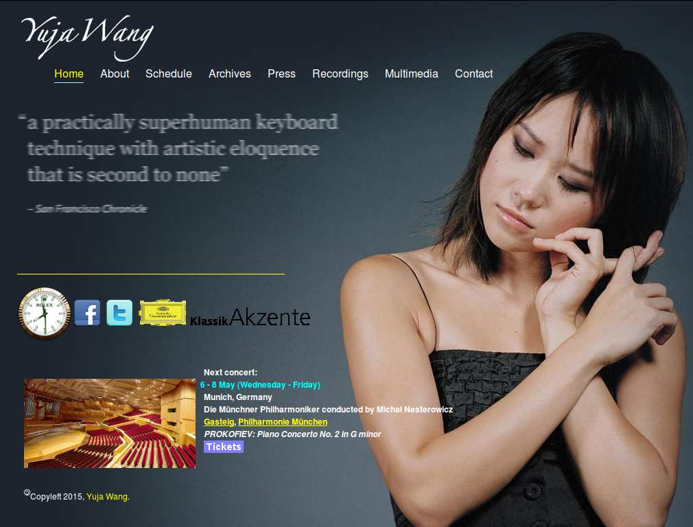 In 2024, nicerweb.com again served both to house the Archives and to prepare Yuja's web site yujawang.com when Yuja changed her management team from |